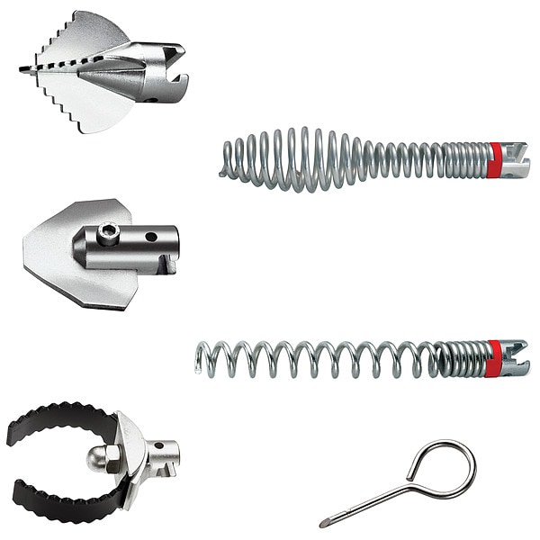 Drain Cleaning Set, Product Type Drain Cleaning Tool Set, Compatible Cleaner Series R600, Number of Augers 2, Auger Type Bulb Auger, Straight Auger, Number of Cutters 3, Cutter Type 4-Blade Cutter, Sharktooth Cutter, Spade Cutter, Number of Cables 0, Maximum Drain Line Inside Diameter 5 7/8 in, Minimum Drain Line Inside Diameter 13/16 in, Application Drain Cleaners, Janitorial, Plumbing, Cable Material Aluminum, Plastic, Steel, Connection Size 7/8 in, Coupling Type T-Slot