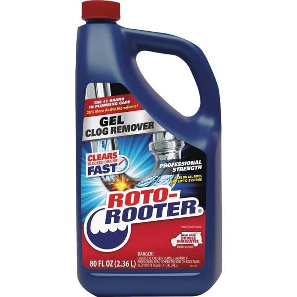 Roto-Rooter Gel Clog Remover is a professional strength clog remover that quickly dissolves and removes nearly all types of clogs including those from hair soap scum grease and more. The professional gel formula has 25% more active ingredients than other products and precise viscosity that powers through standing water and then clings to the clog until it is destroyed.