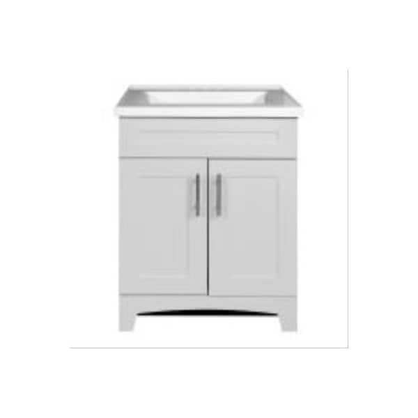 24W, Shaker Vanity Combo, Fashion Grey RTF Finish, Shaker Door Style, 2 Doors, Soft Close Doors, Furniture Inspired Toe Kick, Premium White Cultured Marble Vanity Top With Rectangle Wave Bowl Included, Satin Nickel Cabinet Hardware Included, Fully Assembled, Ready To Install, , Overall Dimensions 245W x 1875D x 36H