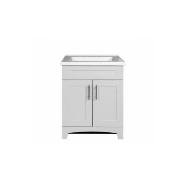 Euro, 24W, Fashion Grey, Raised Panel Combo Vanity, With White Cultured Marble Top, Decorative Door Hardware Vanity Top Included, Fully Assembled, Overall Dimensions 24W x 1812D x 3514H, Ready To Install, Fully Assembled