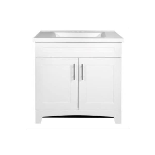 30W, Shaker Vanity Combo, White RTF Finish, Shaker Door Style, 2 Doors, Soft Close Doors, Furniture Inspired Toe Kick, Premium White Cultured Marble Vanity Top With Rectangle Wave Bowl Included, Satin Nickel Cabinet Hardware Included, Fully Assembled, Ready To Install, , Overall Dimensions 305W x 1875D x 36H