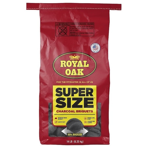 Royal Oak Super Size charcoal briquettes are 50% bigger than other brands and ;light fast, with high heat and a long burn time for the best grilling experience. Give your food that classic smoky, wood-?red BBQ avor you know and love. Made in the USA from the ?nest hardwoods and featuring our patented fast-start ridge design for great air ow and consistent temperatures. ;Ideal for grilling at high temperatures and for low and slow smoking. Works great in charcoal grills and smokers.