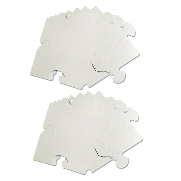 These convenient pre-cut puzzle paper sheets are perfect for collage art, self-portraits and family pictures, or math and literacy lessons. In the classroom, children can each decorate their own puzzle shape using a variety of art media to express their individuality, celebrate diversity, or to link numbers and letters together. The puzzle shapes are designed to align from any side. Attach them using tape, pin them to bulletin boards, or glue them down to poster boards for an awesome classroom display! Each pack includes 30 pieces measuring 9 x 9-1/2 23 x 24 cm and guide. Sold as 2 packs for a total of 60 pieces.