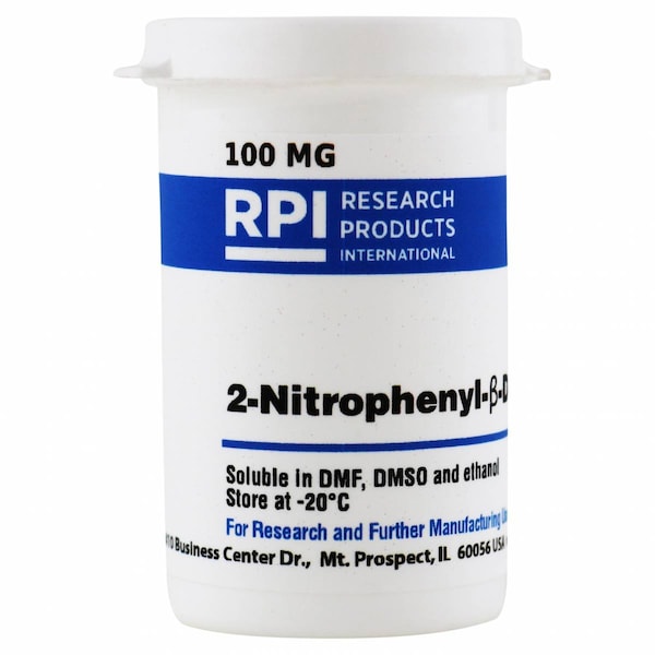 Spectrophotometric substrate for detection of B-D-Glucosidase.CAS Number: 2816-24-2Molecular Weight: 301.3Chemical Formula: C12H15NO8Solubility: DMF, DMSO and EthanolStorage Temperature: Short Term: 2-8C; Long Term: -20CStorage Conditions: RefrigeratorAppearance: White to pale yellow powder Solution 1% Water: Clear, colorless Purity TLC: 98 %2- Nitrophenol Colorimetric: 100 ppmIdentity: FTIR Concordant Shipping Weight: 0.03 lbsShipping Dimensions: 1.25 x 1.75 x 1.25Research or further manufacturing use only, not for food or drug use.