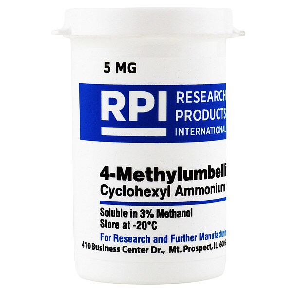 4-Methylumbelliferyl-a-L-Iduronide, Cyclohexyl Ammonium Salt, CAS Number 66895-33-8, Purity Greater Than 95 Percent, Container Size 5 mg, Form Powder, Molecular Weight 451.5, Solubility 3 Percent in Methanol, Storage Temp. -20 Degrees C, Chemical Formula C16H16O9, C6H13N, Shelf Life 18 mo