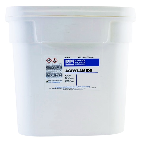 Acrylamide CHNO is a water-soluble monomer 71.08 g/mol that forms polyacrylamide gels used in electrophoresis to separate proteins and nucleic acids. It polymerizes with bis-acrylamide and initiators like APS and TEMED. Common applications in life science labs include SDS-PAGE, Western blotting, and nucleic acid analysis.WARNING! This product can expose you to Acrylamide, a chemical which is known to the State of California to cause cancer, developmental and reproductive harm. For more information go to www.P65Warnings.ca.gov.CAS Number: 79-06-1Molecular Weight: 71.1Chemical Formula: C3H5NOSolubility: WaterStorage Temperature: Room TemperatureStorage Conditions: Room TemperatureAppearance: White Crystalline Powder Acrylic Acid: 10 ppmAssay: 99.9 %Conductivity: 3.5 umhosDNase, RNase, protease: Not Detected Electrophoresis: Pass Test Iron: 1 ppmLead: 1 ppmMagnesium: 1 ppmMelting Point: 84.0 - 86.0 oCpH 10%, 0.1 M NaCl @ 25 oC: 6.5 - 7.5 Solubility 40% Aqueous Solution: Clear and colorless BSE/TSE Free: BSE/TSE Free Non Animal Origin: Non Animal Origin Country of Origin: Report Shipping Weight: 22.0401 lbsShipping Dimensions: 10.00 x 11.25 x 10.00Research or further manufacturing use only, not for food or drug use.