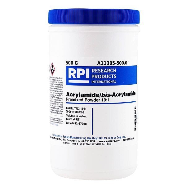 Acrylamide/bis-Acryl, 29:1, Purity Greater Than 95 Percent, Container Size 500 g, Form Powder, Storage Temp. Room Temperature, Shelf Life 18 mo