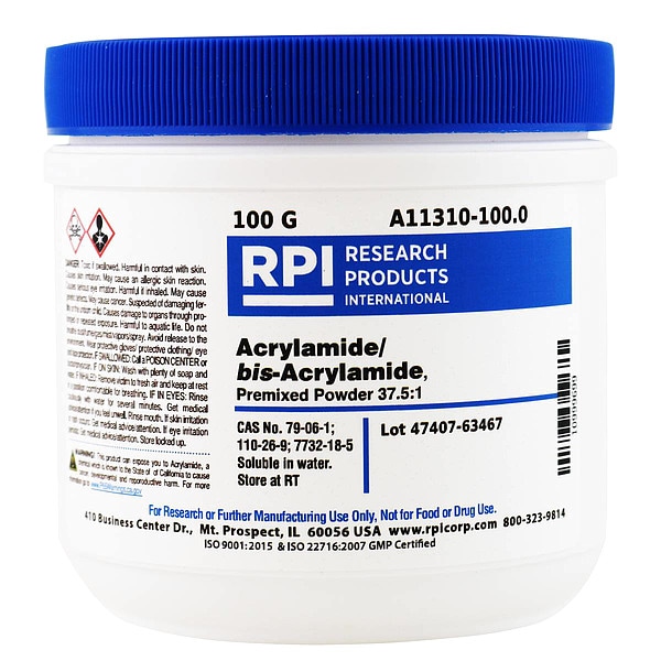 Acrylamide/bis-Acryl, 37.5:1, Purity Greater Than 95 Percent, Container Size 100 g, Form Powder, Storage Temp. Room Temperature, Shelf Life 18 mo