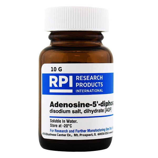 ADP (Adenosine-5-diphosphate), CAS Number 16178-48-6, Purity Greater Than 95 Percent, Container Size 10 g, Form Powder, Molecular Weight 507.2, Solubility Water, Storage Temp. -20 Degrees C, Chemical Formula C10H13N5Na2O10P2, 2H2O, Shelf Life 18 mo