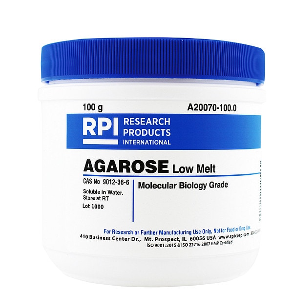 Agarose - Low Melt, CAS Number 9012-36-6, Chemical Formula (C6H10O5;C6H8O4)n, Chemical Grade Lab, Shelf Life 18 mo, Special Information Low Melt