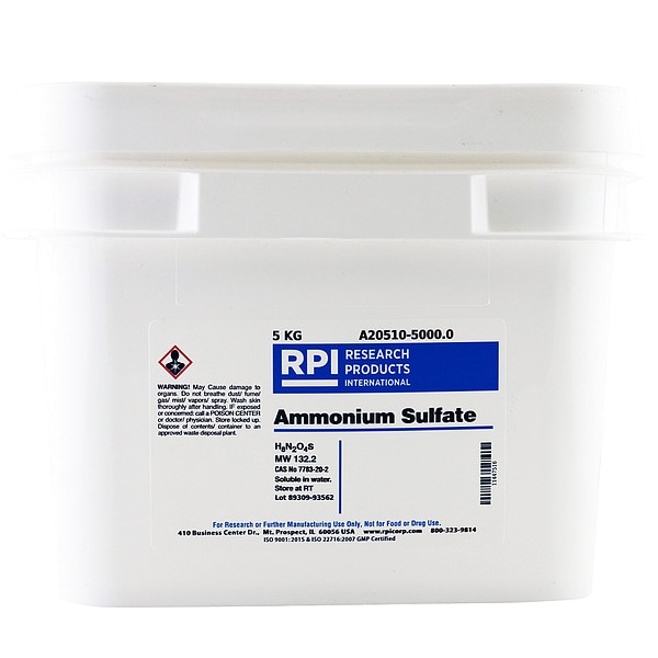 Ammonium Sulfate, CAS Number 7783-20-2, Molecular Weight 132.2, Chemical Formula H8N2O4S, Chemical Grade Lab, Chemical Family Type Reagent, Shelf Life 18 mo, Special Information BSE/TSE Free