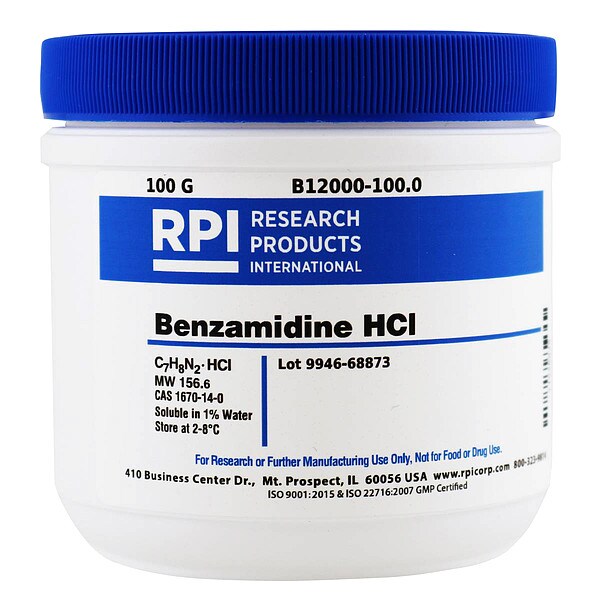Benzamidine Hydrochloride, Container Size 100 g, Solubility Water, Form Powder, Container Material Plastic, Storage Temp. 2 Degrees to 8 Degrees C, Shelf Life 18 mo