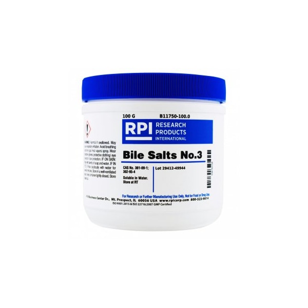Bile Salts No. 3 is refined bile salt, comprising mainly of sodium cholate and sodium deoxycholate. It is used in media as a agent to isolate enteric organisms and coliforms. It is an excellent inhibitor of gram positive bacteria such as streptococci and staphylocci.
