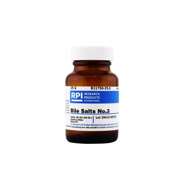 Bile Salts No. 3 is refined bile salt, comprising mainly of sodium cholate and sodium deoxycholate. It is used in media as a agent to isolate enteric organisms and coliforms. It is an excellent inhibitor of gram positive bacteria such as streptococci and staphylocci.