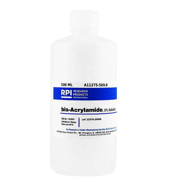 bis-Acrylamide, 2 Percent Solution, Purity Greater Than 95 Percent, Container Size 500 mL, Form Powder, Storage Temp. Room Temperature, Shelf Life 18 mo