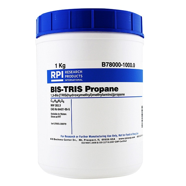 1,3-Bis(Tris(Hydroxymethyl) Methylamino)Propane, Concentration B78000, CAS Number 64431-96-5, Molecular Weight 282.3, Chemical Formula C11H26N2O6, Chemical Grade Lab, Chemical Container Size 1 kg, Chemical Family Type Buffer, Shelf Life 18 mo, Special Information BSE/TSE Free