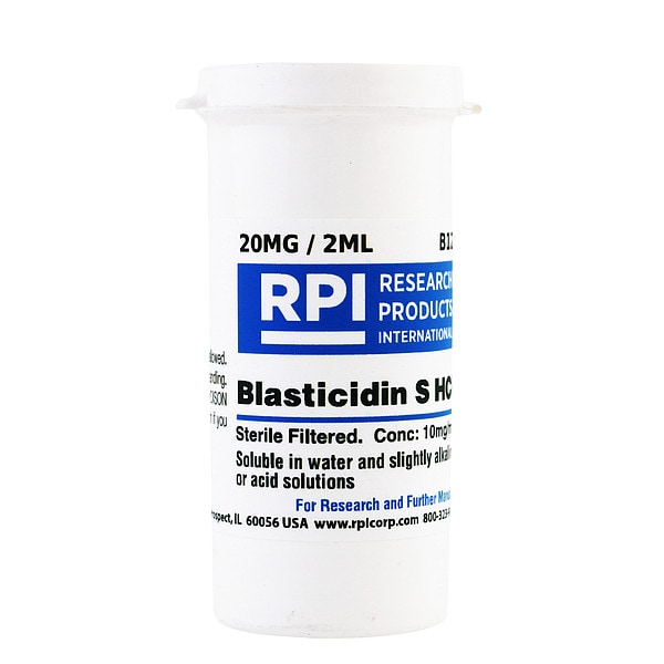 Blasticidin S Hydrochloride Solution, Molecular Weight 458.9, Chemical Formula C21H41N5O11 H2SO4, Shelf Life 18 mo