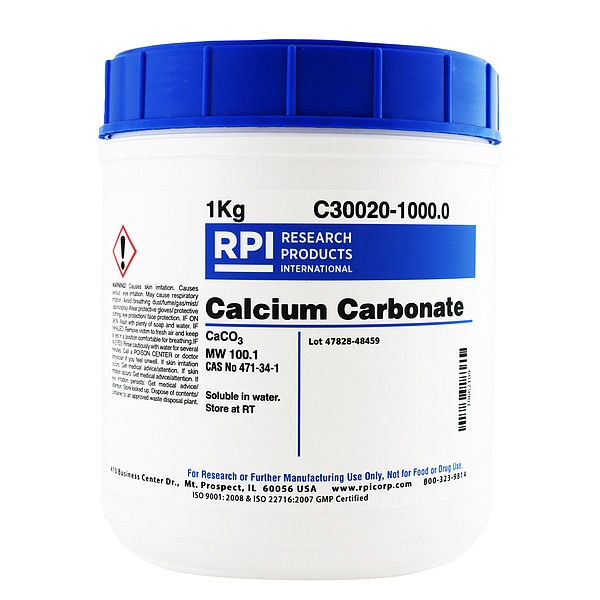 Calcium Carbonate, CAS Number 471-34-1, Molecular Weight 100.1, Chemical Formula CaCO3, Chemical Grade Lab, Chemical Family Type Reagent, Shelf Life 18 mo, Special Information BSE/TSE Free