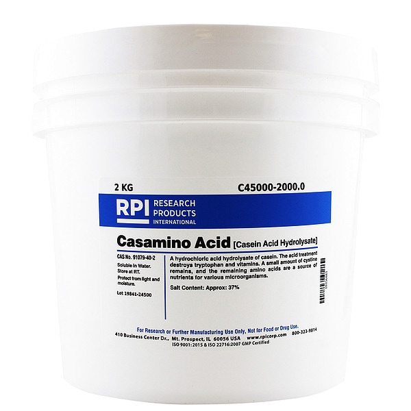 Casamino Acids (Casein Acid hydrolysate ), Container Size 2 kg, Solubility Water, Form Powder, Container Material Plastic, Storage Temp. Room Temperature, Shelf Life 18 mo