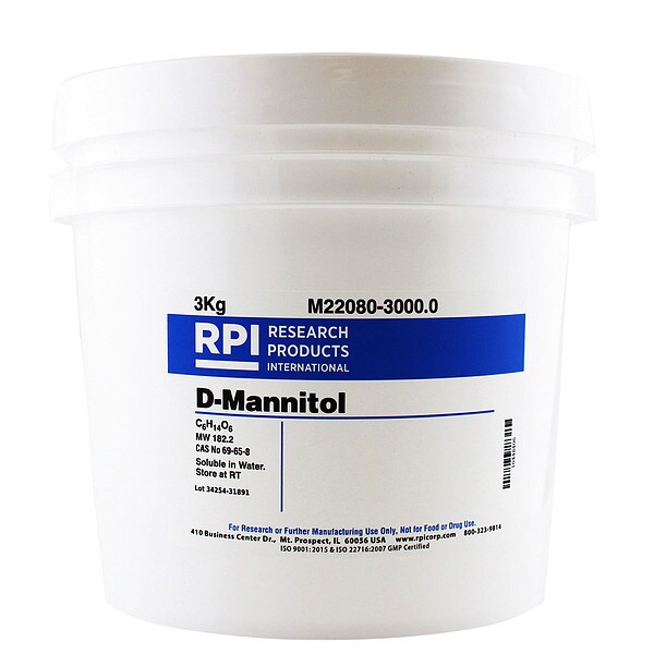 D-Mannitol, CAS Number 69-65-8, Molecular Weight 182.2, Chemical Formula C6H14O6, Chemical Grade EP, USP, Chemical Family Type Reagent, Shelf Life 18 mo