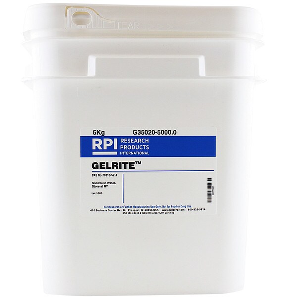 Gelrite, CAS Number 71010-52-1, Chemical Grade Lab, Chemical Family Type Reagent, Shelf Life 18 mo, Special Information BSE/TSE Free