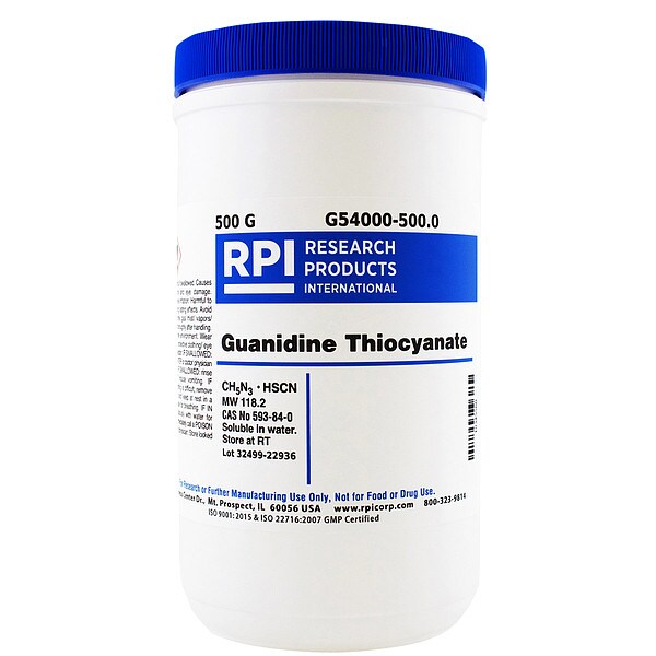 Guanidine Thiocyanate, Container Size 500 g, Solubility Water, Form Powder, Container Material Plastic, Storage Temp. Room Temperature, Shelf Life 18 mo