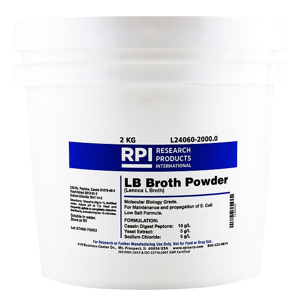 LB Broth (Lennox L Broth), Purity Greater Than 95 Percent, Container Size 2 kg, Form Powder, Solubility Water, Storage Temp. Room Temperature, Shelf Life 18 mo