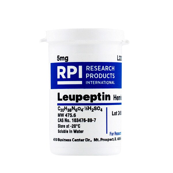 Leupeptin Hemisulfate, Container Size 5 mg, Solubility Water, Form Powder, Container Material Plastic, Storage Temp. 2 Degrees to 8 Degrees C, Shelf Life 18 mo