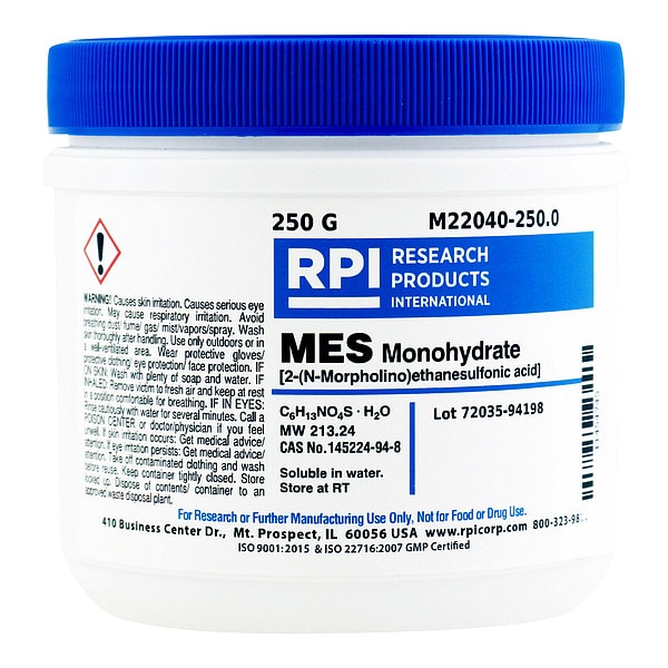 MES Free Acid, Concentration M22040, CAS Number 145224-94-8, Molecular Weight 195.24, Chemical Formula C6H13NO4S H20, Chemical Container Size 250 g, Chemical Family Type Buffers, Shelf Life 18 mo