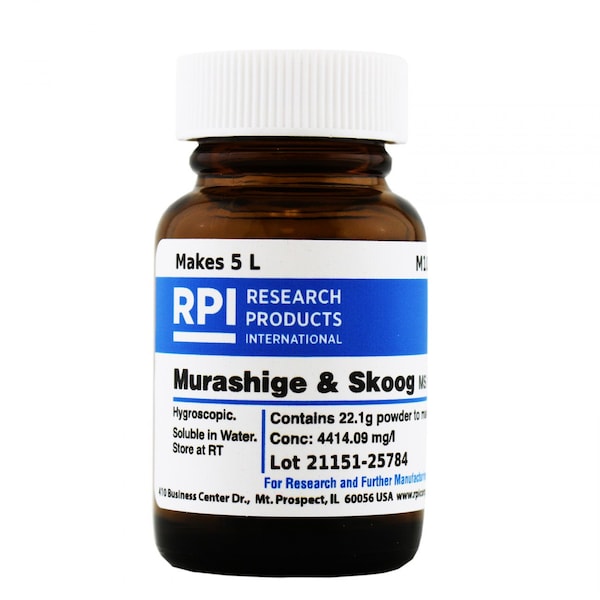 Basal salt mixture containing micro and macro elements with as vitamins as described by Murashige and Skoog 1962 and vitamins as described by Gamborg et. al. 1966. Concentration: 4414.09 mg/L HygroscopicSolubility: WaterStorage Temperature: Room TemperatureStorage Conditions: Room TemperatureAppearance: White Powder Potassium Nitrate: 1900.00 mg/lAmmonium Nitrate: 1650.00 mg/lPotassium Dihydrogen Phosphate: 170.00 mg/lMagnesium Sulfate Anhydrous: 180.54 mg/lMS Micro Elements: 69.53 mg/lCalcium Chloride Anhydrous: 332.02 mg/lGamborg B5 Vitamines: 112.00 mg/lBSE/TSE Free: BSE/TSE Free Country of Origin: Report Shipping Weight: 0.1499 lbsShipping Dimensions: 3.38 x 4.63 x 3.38Research or further manufacturing use only, not for food or drug use.