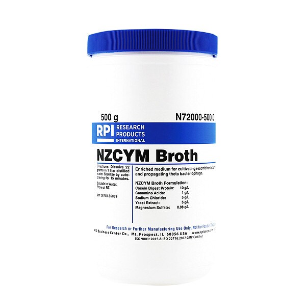 NZCYM Broth, Purity Greater Than 95 Percent, Container Size 500 g, Form Powder, Solubility Water, Storage Temp. Room Temperature, Shelf Life 18 mo