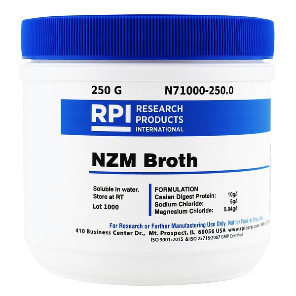 NZM Broth, Purity Greater Than 95 Percent, Container Size 250 g, Form Powder, Solubility Water, Storage Temp. Room Temperature, Shelf Life 18 mo
