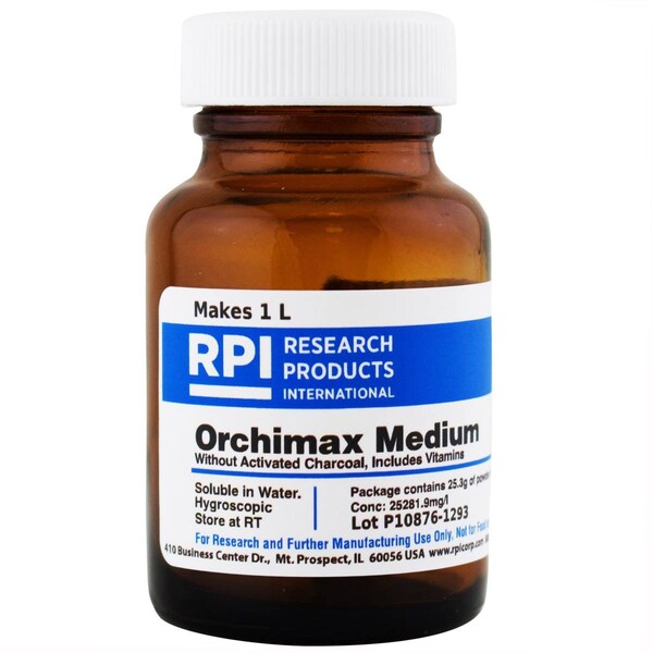Package contains 25.3g of powder to make 1 liter of medium.Common Name: Orchid Maintenance MediumSolubility: WaterStorage Temperature: Room TemperatureStorage Conditions: Room TemperatureAppearance: White Powder Ammonium Nitrate: 825.0 mg/lCalcium Chloride Anhydrous: 166.0 mg/lBoric Acid: 3.10 mg/lCupric Sulfate Pentahydrate: 0.0125 mg/lEDTA. Ferric - Sodium Salt: 36.70 mg/lMagnesium Sulfate Anhydrous: 90.35 mg/lMagnesium Sulfate monohydrate: 8.45 mg / LMES: 1000.0 mg/lMyo-Inositol: 100.0 mg/lNicotinic Acid: 1.0 mg/lPotassium Dihydrogen Phosphate: 85.0 mg/lPotassium Iodide: 0.415 mg / LPotassium Nitrate: 950.0 mg/lPyridoxine HCl: 1.0 mg/lSodium Molybdate Dihydrate: 0.125 mg/lSucrose: 20000.0 mg/lThiamine HCl: 10.0 mg/lTryptone: 2000.0 mg/lZinc Sulfate Heptahydrate: 5.30 mg/lCobalt Chloride Hexahydrate: 0.0125 mg / LShipping Weight: 0.0351 lbsShipping Dimensions: 1.25 x 1.75 x 1.25Research or further manufacturing use only, not for food or drug use.