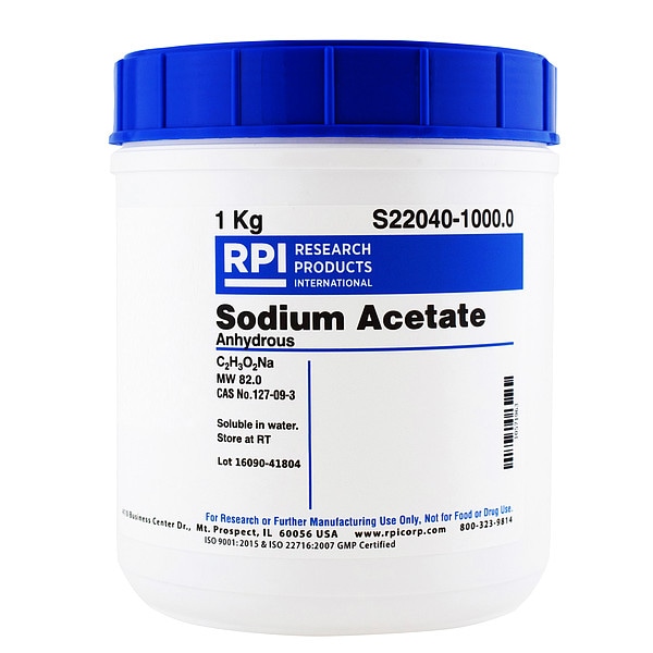 Sodium Acetate - Anhydrous, CAS Number 127-09-3, Molecular Weight 82, Chemical Formula C2H3O2Na, Chemical Grade ACS, USP, Chemical Container Size 1 kg, Chemical Family Type Acid, Shelf Life 18 mo, Special Information BSE/TSE Free