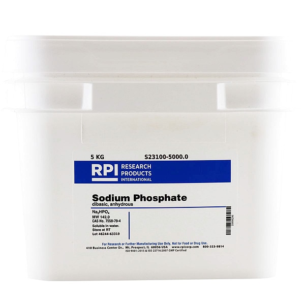 Sodium Phosphate - Dibasic Anhydrous, Concentration S23100, CAS Number 7558-79-4, Molecular Weight 142, Chemical Formula Na2HPO4, Chemical Grade Lab, Chemical Container Size 5 kg, Chemical Family Type Buffer, Shelf Life 18 mo, Special Information BSE/TSE Free