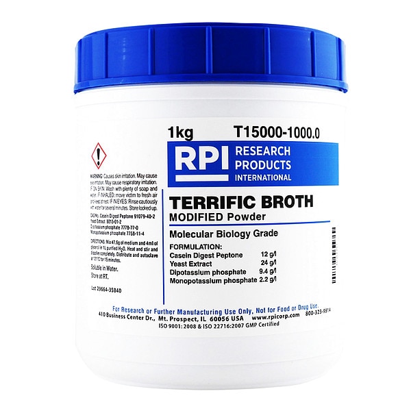 Terrific Broth, Modified, CAS Number 7758-11-4, 7778-77-0, 8013-01-2, 91079-40-2, Chemical Grade Lab, Chemical Family Type Reagent, Shelf Life 18 mo