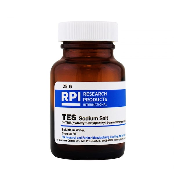 TES N-Trishydroxymethylmethyl-2-aminoethanesulfonic acid Sodium Salt is a commonly used buffering agent in life science research. It helps to maintain a stable pH environment in biological experiments, such as cell culture, protein purification, and enzyme assays. TES Sodium Salt is advantageous due to its ability to resist changes in pH over a wide range of temperatures, making it suitable for various experimental conditions. Additionally, its low UV absorbance and minimal interference with biological molecules make it a preferred choice in many biochemical applications Common Name: 2-Trishydroxymethyl methyl-2-amino-1-ethanesulfonic acid, sodium saltCAS Number: 70331-82-7Molecular Weight: 251.2Chemical Formula: C6H14NO6SNaSolubility: WaterStorage Temperature: Room TemperatureStorage Conditions: Room TemperatureAppearance: White to off-white crystalline powder Solubility: Clear and colorless solution Water: 7.0 %Assay Titration: 99.0 %Country of Origin: Report Shipping Weight: 0.22 lbsShipping Dimensions: 1.63 x 3.00 x 1.63Research or further manufacturing use only, not for food or drug use.