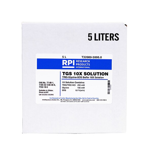 TRIS-GLYCINE-SDS 10x Solution, Concentration T32080, Chemical Container Size 5 L, Chemical Family Type Buffers, Shelf Life 18 mo