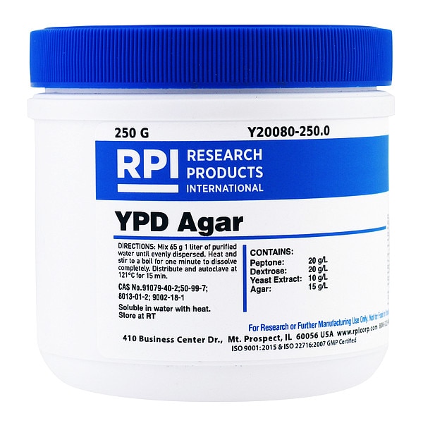 YPD Agar, CAS Number 50-99-7, 8013-01-2, 9002-18-0, 91079-40-2, Chemical Formula C14H24O9, Chemical Grade Lab, Chemical Family Type Reagent, Shelf Life 18 mo