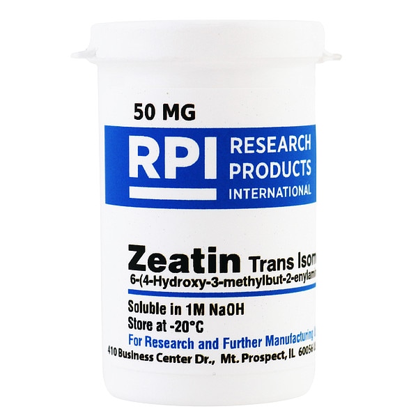 Zeatin, CAS Number 1637-39-4, Purity Greater Than 95 Percent, Container Size 50 mg, Form Powder, Molecular Weight 219.3, Solubility 1M NaOH, Storage Temp. 2 Degrees to 8 Degrees C, Chemical Formula C10H13N5O, Shelf Life 18 mo