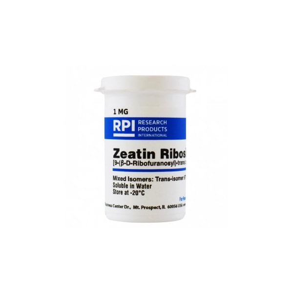 Naturally occurring cytokinin riboside. Main effects in tissue culture systems include control of shoot growth and formation, cell division and inhibition of leaf senescence. Chromatographically purified and recrystallized. Plant cell culture tested.Mixed isomers: trans-isomer 97%, cis-isomer >2%.