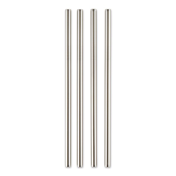 Our set of four bent drink straws are made of polished stainless steel and are ideal for cold summer beverages, milk shakes and dinner party cocktails. 8.5 inches in overall length. Dishwasher safe.