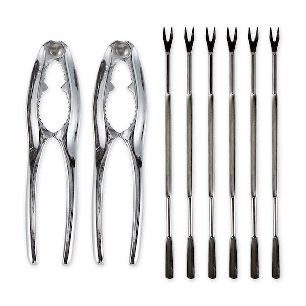 We strive to offer quality kitchen products and cooking tools at competitive prices. This seafood set is a perfect example. Crack your crustaceans open efficiently using this eight piece lobster and crab seafood set. This set includes two chrome plated shell crackers, and six 18-8 stainless steel picks. Durable and long lasting, The pieces are designed for ease of use and comfort. These elegant pieces will be a great addition to your next crab boil or romantic dinner for two. 1/2 Picks measure 6.25-inches in length, crackers measure 6-inches in length. Dishwasher safe on top rack. When all the right people, and ingredients, kitchen tools, and food come together, we call this the art of gathering.