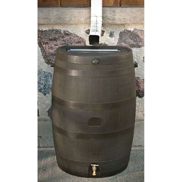 Rain Barrel, 50 gal Capacity, Plastic, Brown