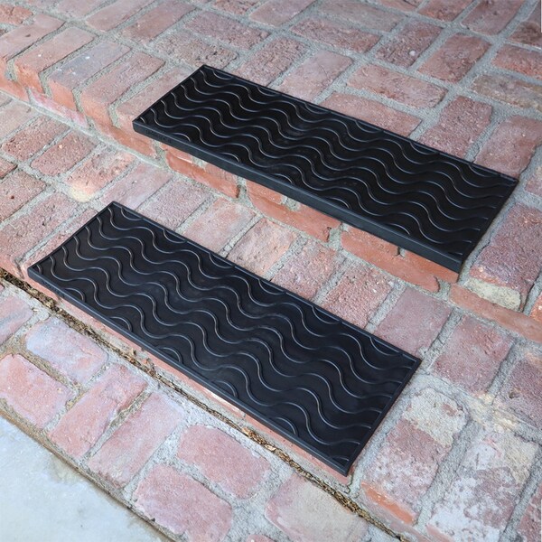 The Waves Rubber Stair Treads help you maximize staircase safety by converting your stairs into non-slip steps. The wave-patterned staircase mats are each 9.75 x 29.125 in size. Thus, these rubber step mats fit easily over most residential and commercial stairs, affording them a layer of protection, slip-resistance, and style that they would not have otherwise. The stair-tread materialreclaimed and natural rubberis also highly resistant to weathering from UV-rays, ozone, oxygen, and moisture. This makes them well-suited as non-slip, outdoor stair treads. Furthermore, these slip-resistant treads also help prevent your stairs themselves from incurring physical damage. After all, they are made of highly durable natural and reclaimed rubber materials. These wave-patterned staircase mats are made of 3/16-thick rubber, which makes them extremely well-suited for withstanding constant use for extended periods of time. In addition, these slip resistant treads feature wavy corrugations that complement rubber’s natural, traction-enhancing properties. Such a surface texture increases the number of points of contact between people’s feet and the stairs, significantly enhancing their grip as they walk. Finally, the Waves Rubber Stair Treads are very DIY-friendlyeasy to install with common adhesives. You may use a double-sided tape adhesive for a semi-permanent installation, which allows for easy removal for replacement or relocation.