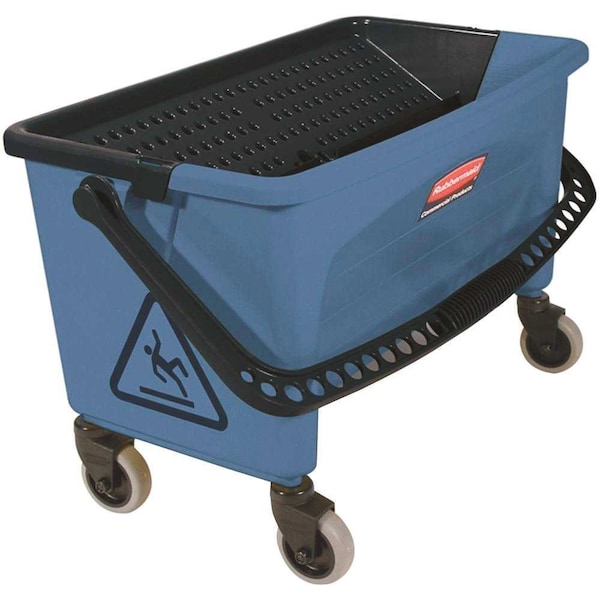 This finish bucket is color-coded blue to visually differentiate use. Handle stay keeps mop upright and ready to use. Washboard surface effectively removes dirt and debris from mop pads before wringing.Twist-valve empties contents without liftingSmooth, non-porous surface helps prevent bacterial growth and cleans up easilyBuckets fit onto the number 6173 janitor cart and accommodate mops up to 18 in. LDurable construction