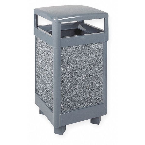 Square, 29 gal, Gray, Height 40 in, Steel, Stone, UV Protectant, Powder Coated, Lid Included, Free-Standing