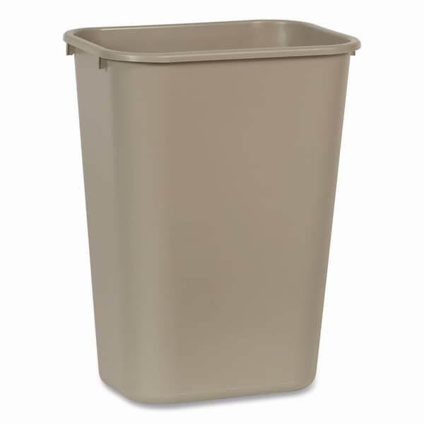 The Rubbermaid Commercial Deskside Trash Can is space-efficient and economical. This waste basket fits under a standard desk height. Its all-plastic construction won't chip, rust, or dent. These waste baskets feature rolled rims to add strength, and are easy-to-clean.