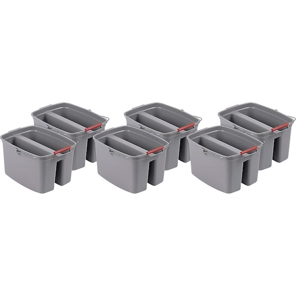 This double pail is part of an easy-to-use cleaning system. Two tall compartments separate the cleaning solution and rinse water. You can simply dunk your mophead into the plastic bucket. Easily carry with the built-in bail handle. The height of the pail with the handle raised is 17-3/4". Volume capacity is 19 quarts.