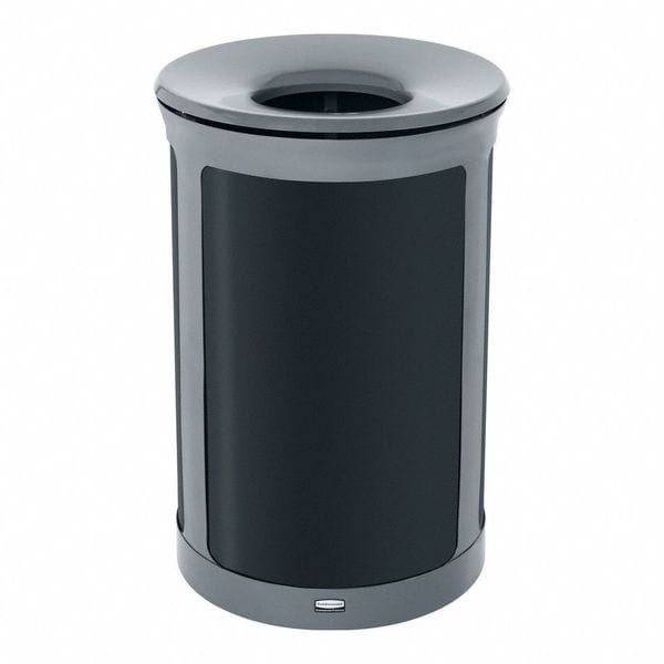 Recycle Can, For Recyclable Material Bottle, Can, Compost, Paper, Trash, Trash Container Capacity 23 gal, Top Type Flat with Top Opening, Number of Containers 1, Number of Openings 2, Container Markings None, Total Capacity 23 gal, Color Gray, Container Shape Round, Height 31 1/4 in, Width/Diameter 20 1/2 in, Depth 20 1/2 in, Material Grouping Metal, Specific Container Material Metal, Finish Powder Coated, Location Indoor, Mobility Stationary, Lid Connection Hinged